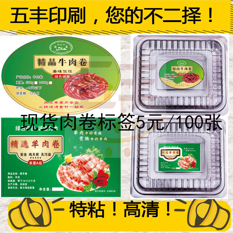 现货肥牛肥羊肉卷贴纸火锅店涮肉美味肉丸不干胶标签批发设计定制