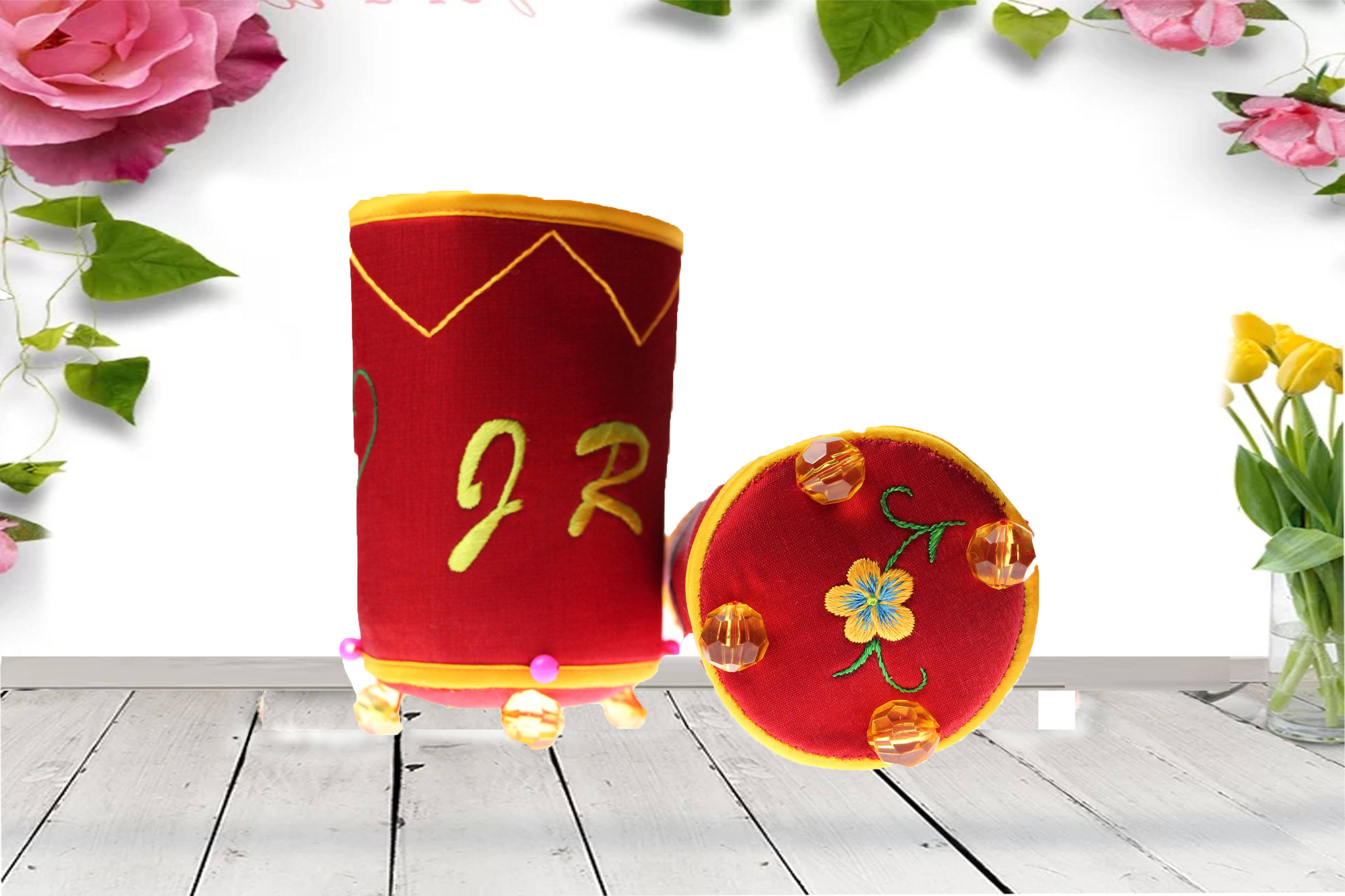 爱尚贺兰纯手工刺绣笔筒创意时尚办公室文具商务笔类收纳笔筒。热门设计联盟服务商